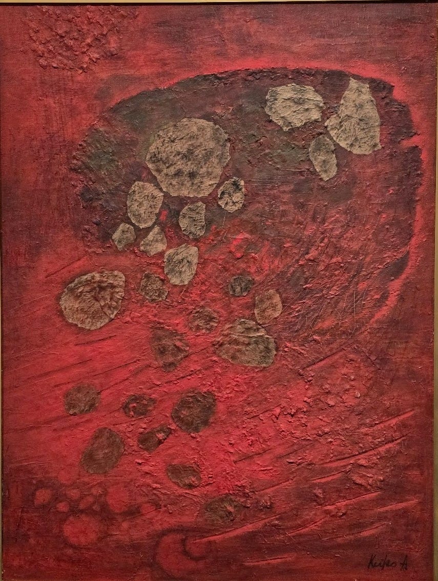 There was also something ominous about Akana’s Growth I (1961). Whatever it is that’s growing here, it brings little sense of promise or progression. It was a little unsettling to gaze at this canvas. But the gorgeous use of red kept me enthralled.